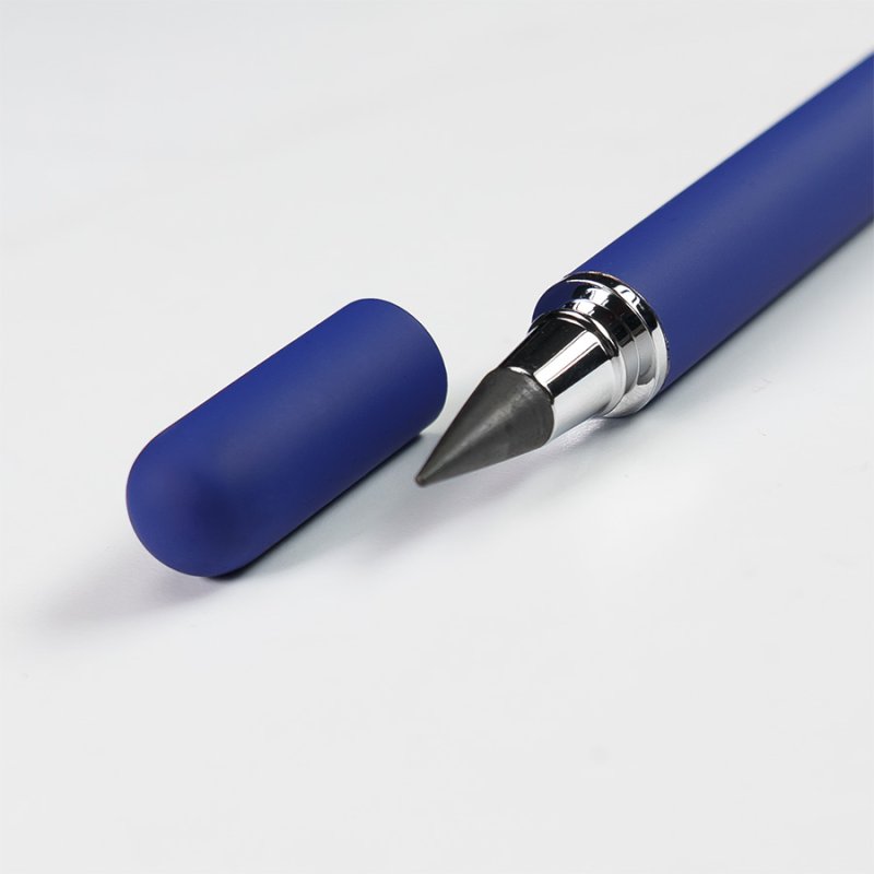 Функциональная модель 2 в 1. С одной стороны - это ручка, а с другой - вечный карандаш. Идеальный выбор рациональных людейкак для промо мероприятия, так и в качестве бизнес подарка. Так как гораздо выгоднее приобрести один пишущий инструмент, в котором будет и ручка, и вечный карандаш, нежели покупать их по отдельности. Корпус ручки с покрытием soft touch. Гравировка будет вскрываться зеркальным хромом в цвет отделки.