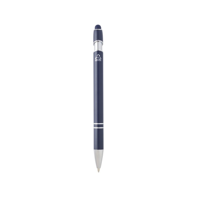 Шариковая ручка Kish с серебряным покрытием имеет корпус из переработанного алюминия и сенсорный стилус из силикона. Переработанный алюминий уменьшает количество отходов на свалках и помогает сохранять природные ресурсы для сокращения выбросов парниковых газов. Цвет чернил: черный. Длина непрерывной линии: 800 метров. Размер пера: 1,0 мм. Recycled Aluminium.