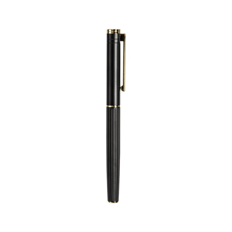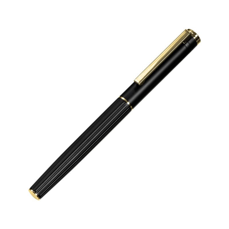 Современное прочтение классической ручки с золотыми деталями, при гравировке колпачка вскрывается золотистый слой, корпуса - серебристый.