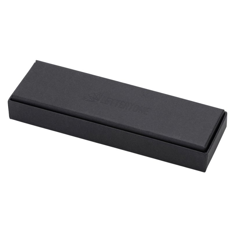 Ручка упакована в чёрный матовый футляр с логотипом бренда Lettertone на дне.