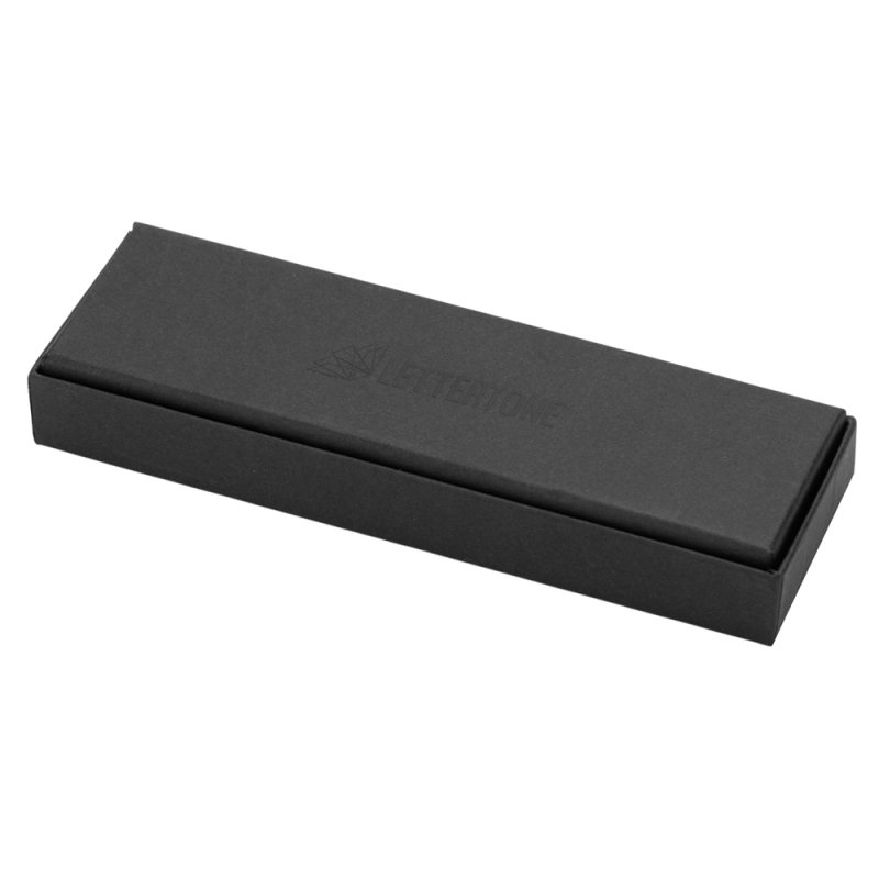 Ручка упакована в чёрный матовый футляр с логотипом бренда Lettertone на дне.
