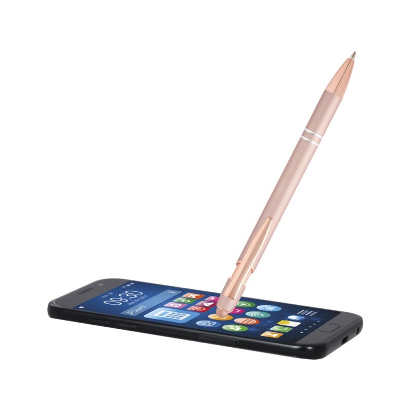 Шариковая ручка Nanna с покрытием из розового золота имеет корпус из переработанного алюминия и сенсорный стилус из силикона. Переработанный алюминий уменьшает количество отходов на свалках и помогает сохранять природные ресурсы для сокращения выбросов парниковых газов. Цвет чернил: синий. Длина непрерывной линии: 800 метров. Размер пера: 1,0 мм. Recycled Aluminium.