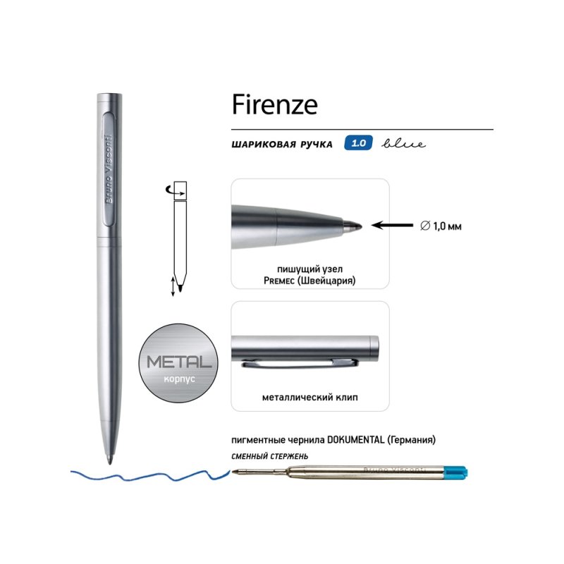 Шариковая металлическая ручка из коллекции Firenze от Bruno Visconti - бизнес-аксессуар, с которым вы всегда будете чувствовать себя уверенно и комфортно.
