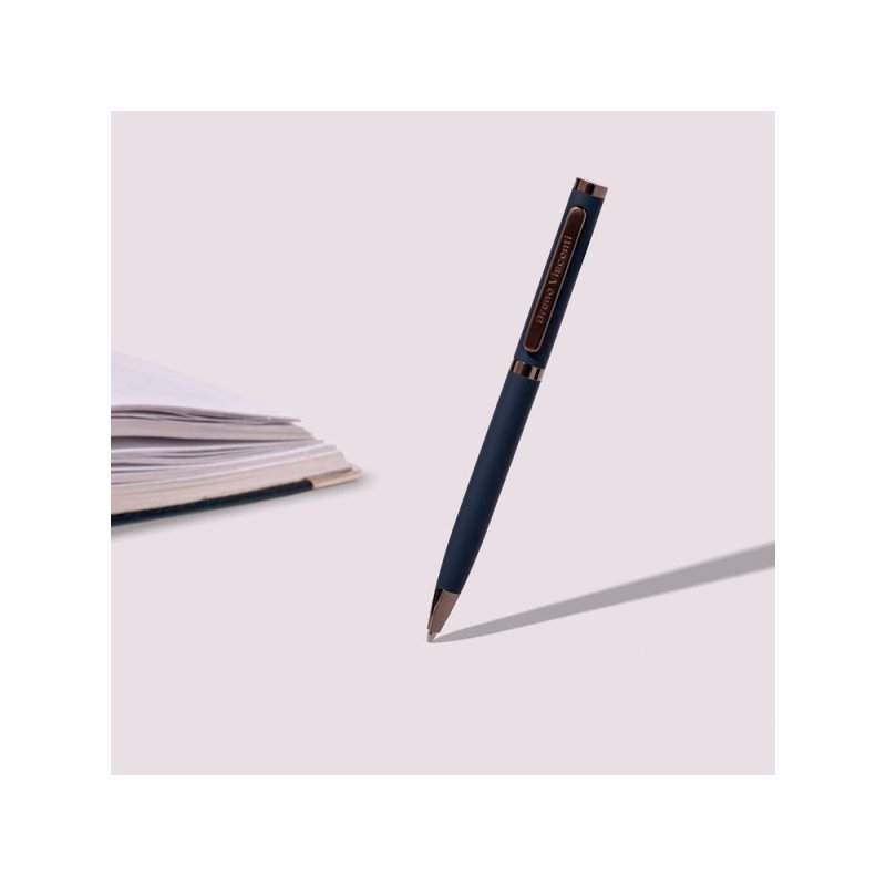 Лаконичный дизайн, прочный металлический корпус, строгость формы подчеркнут статус владельца ручки. Удобство в эксплуатации и тактильно приятные ощущения подарит бархатистое покрытие Soft Touch.