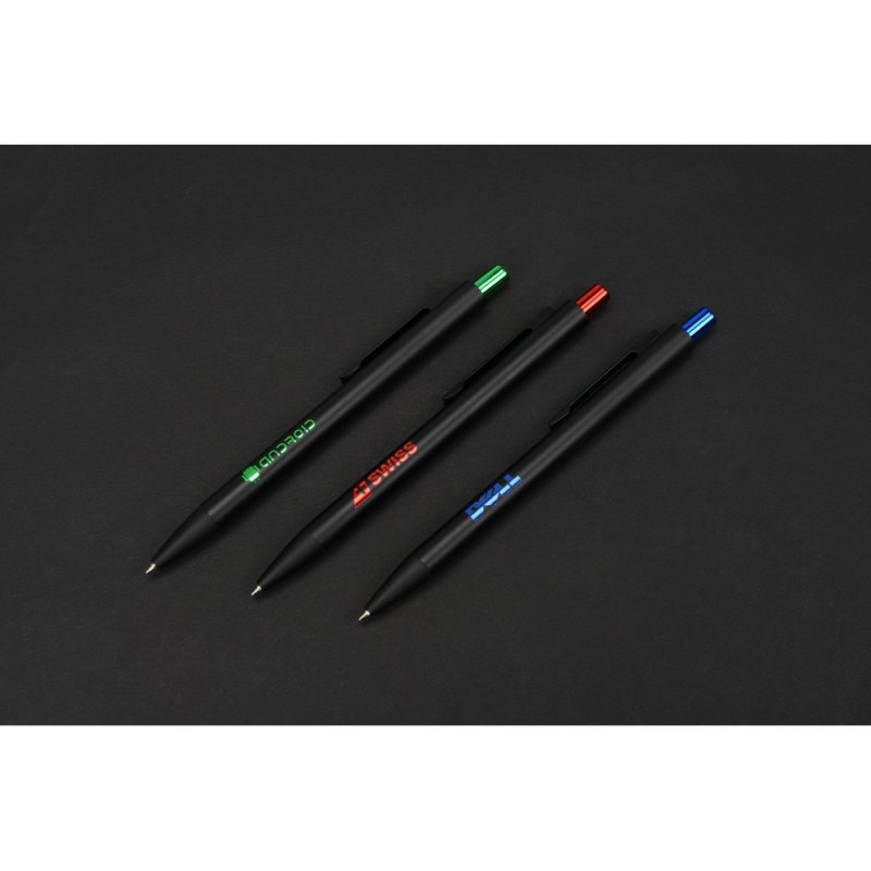 Отличная черная ручка будет сиять в руках ваших клиентов. Секрет ручки в цветном зеркальном слое, который вскрывается в цвет кнопки.