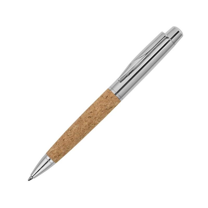 Металлическая шариковая ручка Cask с вставкой из пробки на корпусе в металлическом футляре.
