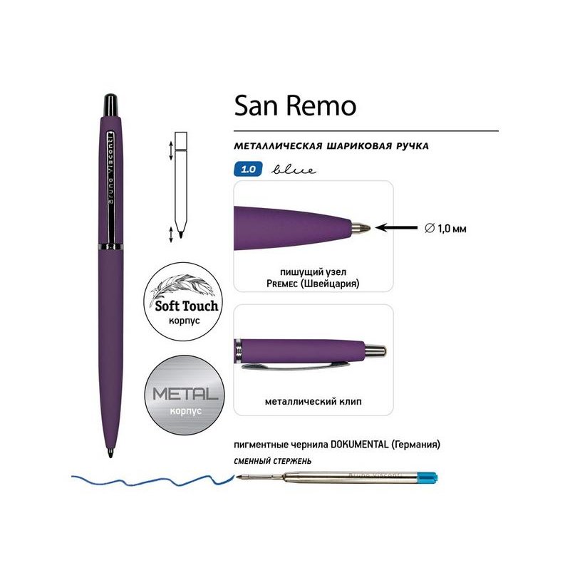 Металлическая шариковая ручка San Remo - аксессуар, призванный стать настоящим элементом стиля, подчеркнуть индивидуальность его владельца.
