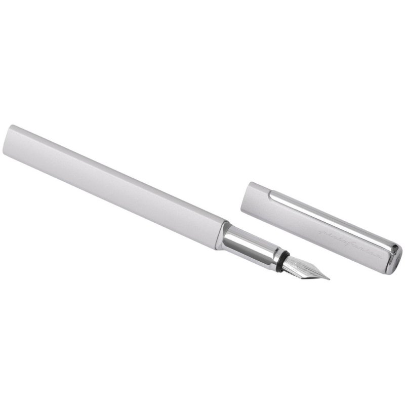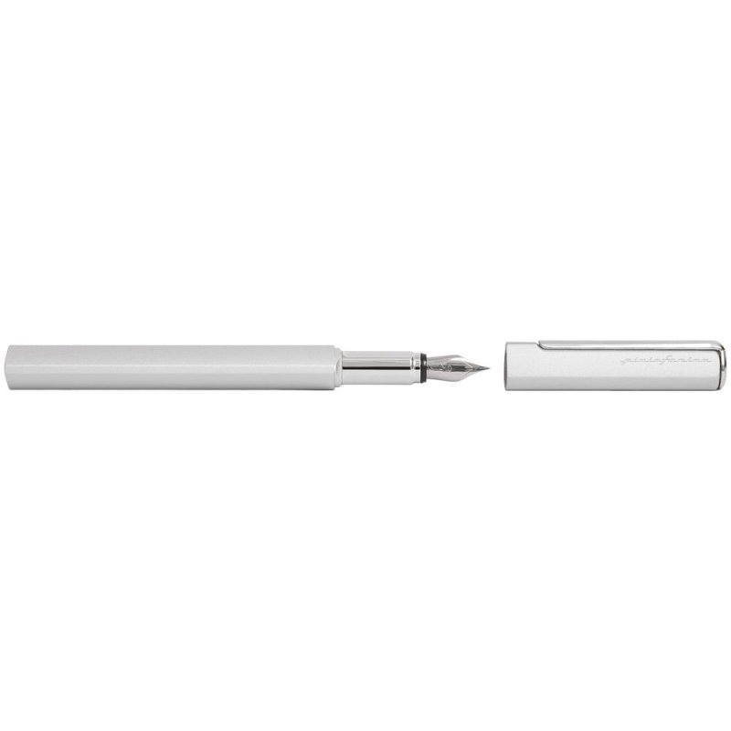 Перьевая ручка коллекции Pininfarina PF One — это безупречное качество и элегантный дизайн итальянского концерна со стильным сочетанием матового корпуса и глянцевых элементов — грипа и клипа — и тонким стальным пером F. Отличительная черта новой модели — поворотный клип на колпачке ручки. В стандартном положении он является элементом дизайна и не выступает за контуры ручки, если же его повернуть, то колпачок ручки превратится в привычный всем колпачок с клипом, который будет надежно держать ручку в кармане или блокноте. Благодаря треугольной форме корпуса ручка удобно ложится в руку. Упакована в треугольную подарочную коробку, повторяющую форму ее корпуса.
