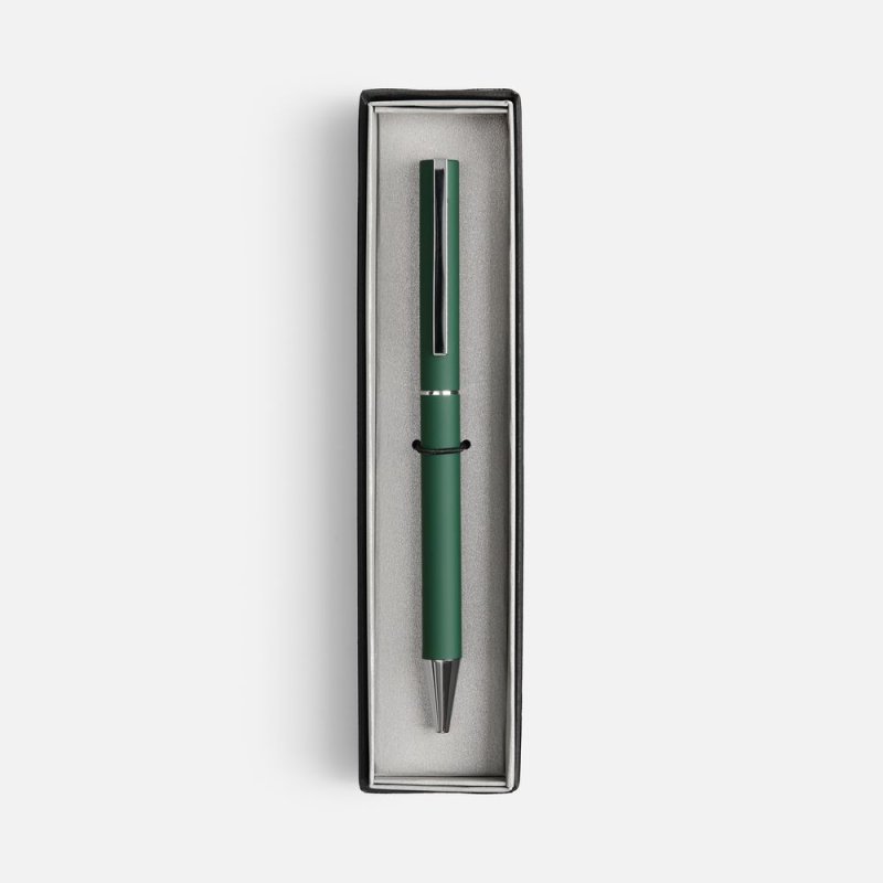 Элегантная ручка Blade в металлическом корпусе с покрытием софт-тач. Футляр из дизайнерской бумаги с контрастным коробом придает подарку законченный вид.