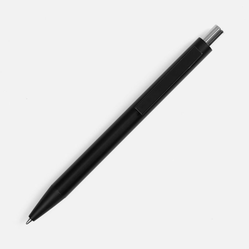 Ручка строгих форм в черном матовом корпусе с цветными деталями, которая точно может удивить — гравировка на ней вскрывается цветом в тон кнопке.