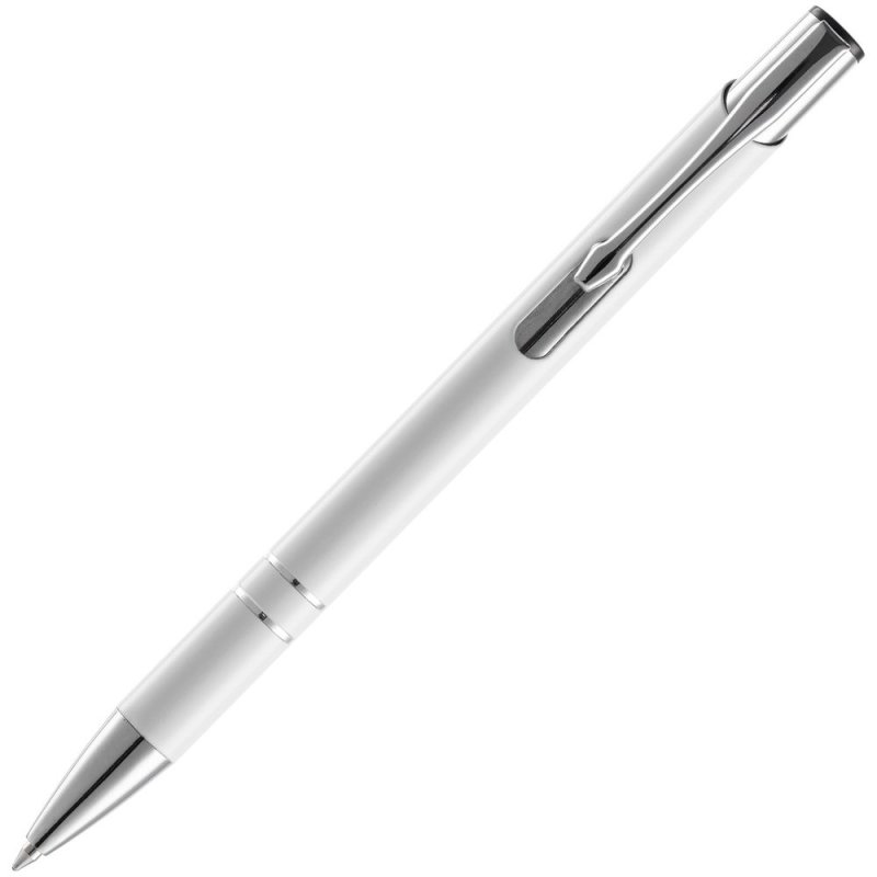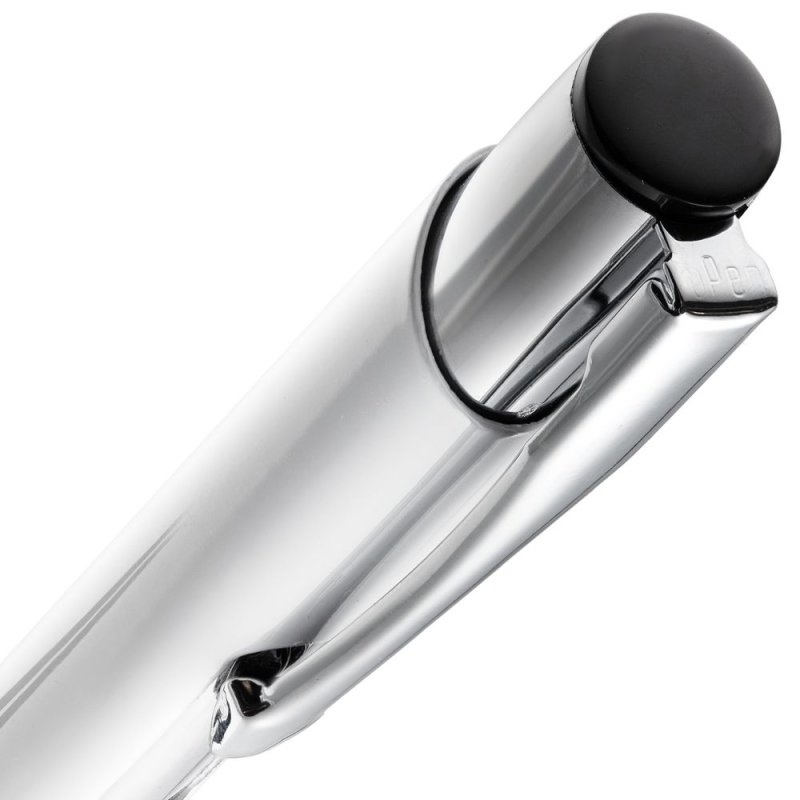 Яркая шариковая ручка с глянцевым цветным корпусом и хромированными деталями.