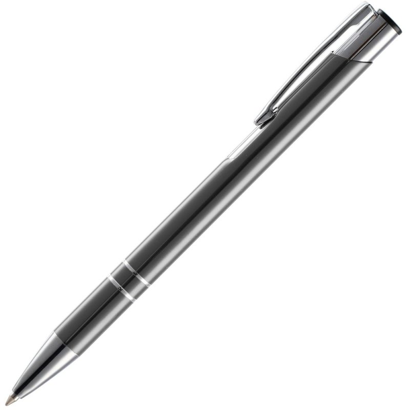 Яркая шариковая ручка с глянцевым цветным корпусом и хромированными деталями.