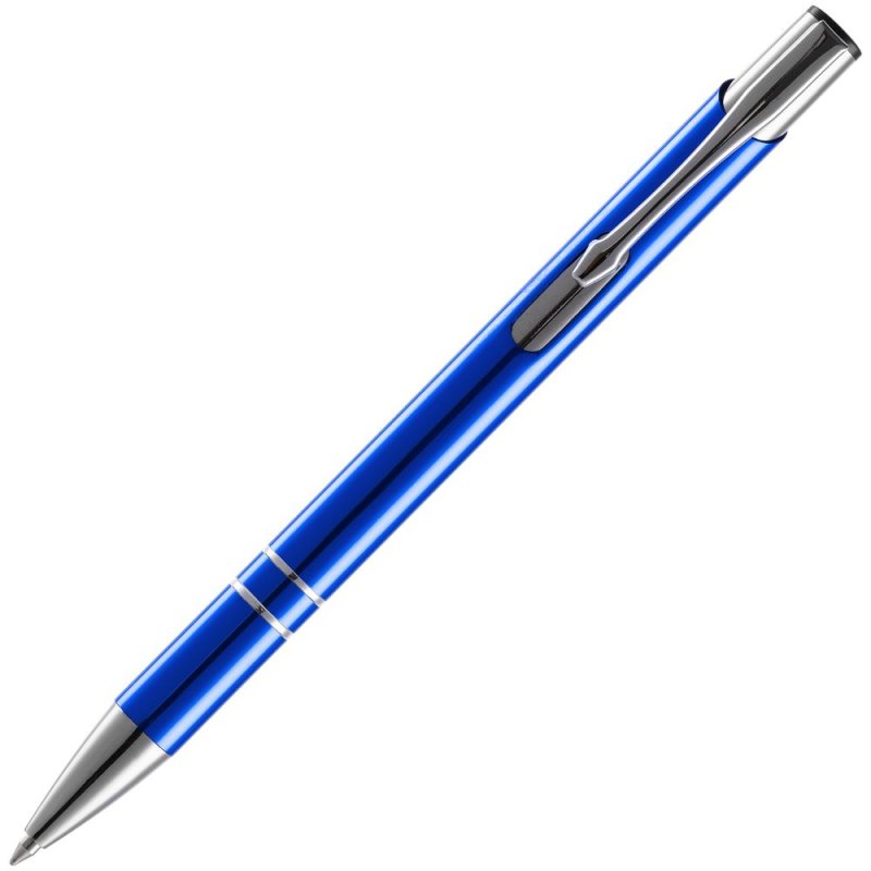 Яркая шариковая ручка с глянцевым цветным корпусом и хромированными деталями.
