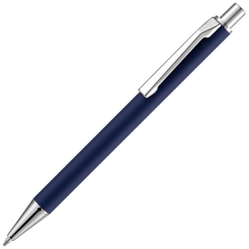Шариковая ручка с покрытием софт-тач и хромированными деталями. Клип оригинальной формы.