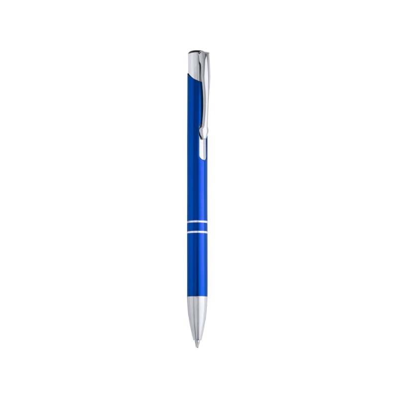 Шариковая ручка с алюминиевым корпусом и кнопкой с анодированным покрытием. Синие чернила