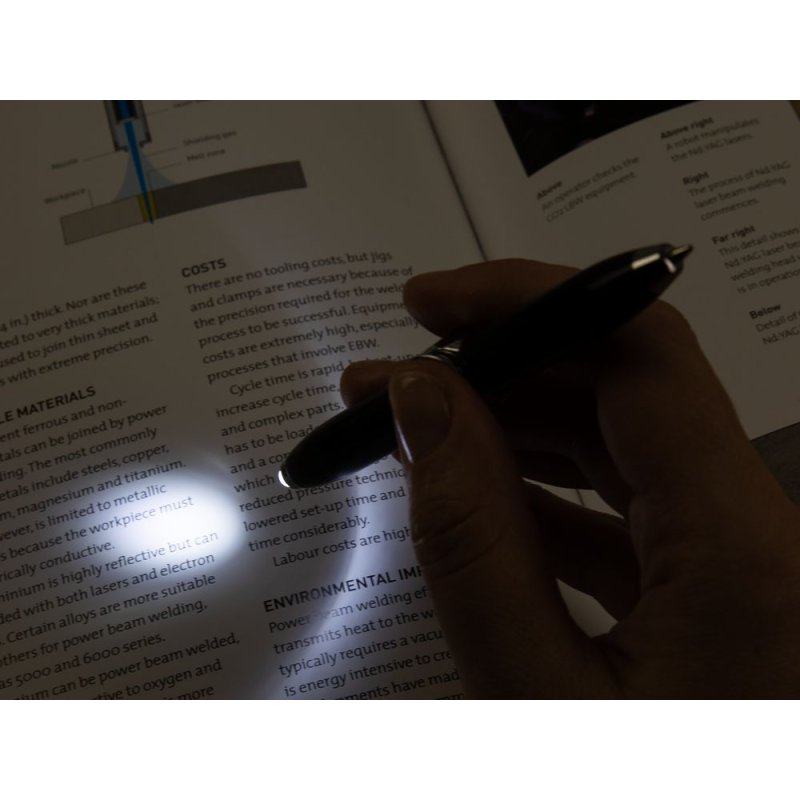 Ручка-спиннер оборудована небольшим фонариком на верхней части корпуса.