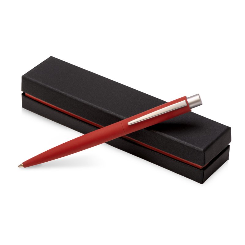 Металлическая шариковая ручка с матовым цветным прорезиненным корпусом. Металлический клип и кнопка в серебристом матовом цвете. Поставляется в красивом черном футляре, внутренний цвет которого идеально сочетается с цветом самой ручки.