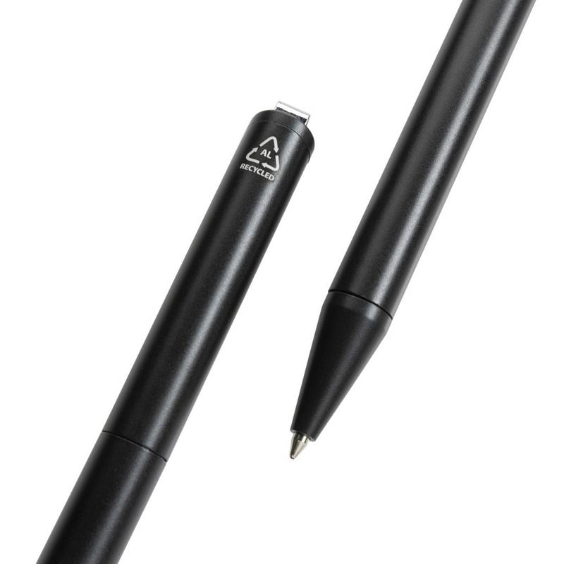 Минималистичная ручка Xavi пригодится и в офисе, и дома, и в путешествиях. Она изготовлена из переработанного алюминия — материала, который можно перерабатывать бесконечно. Это отличный подарок для тех, кто заботится о природе и предпочитает пользоваться экологичными вещами. Стильная ручка выглядит по-деловому, но не слишком строго. Плавные линии, приятный на ощупь корпус — писать ею будет не только удобно, но и эстетически приятно. Стержня с синими немецкими чернилами Documental хватит на 1000 метров письма. Сертифицировано RCS. Эта сертификация полностью контролирует путь поставок переработанных материалов и гарантирует их наличие в изделии.