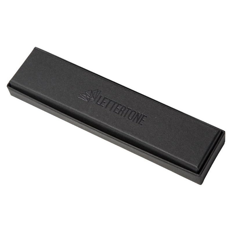 Поставляется в чёрной матовой коробочке с прозрачным логотипом Lettertone на дне.