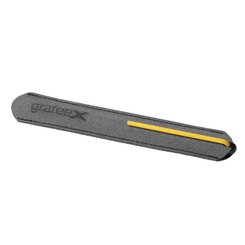 В комплект входит элегантный темно-серый чехол, сшитый вручную из рециклированной кожи.