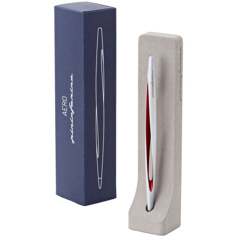 Вдохновленные мощью, формой и красотой воздушных потоков, дизайнеры концерна Pininfarina создали новую модель вечной ручки Pininfarina Aero. Ее элегантная форма напоминает знак бесконечности, корпус ручки очень легкий, так так выполнен из аэрокосмического алюминия и оснащен наконечником Ethergraf, который изготовлен из сплава металлов по запатентованной технологии. Наконечник не содержит свинец и алюминий, производится вручную итальянскими мастерами и практически не расходуется за десятилетия использования. При соприкосновении с поверхностью бумаги, происходит химическая реакция и наконечник оставляет серебристый след, который напоминает цвет графитового карандаша, но обладает большей стойкостью. Легкая, прочная, изысканная ручка контрастирует с тяжелой бетонной подставкой, давая понять, что даже несовместимые на первый взгляд вещи могут существовать в полной гармонии друг с другом. Эта бетонная подставка будет необычным аксессуаром на письменном столе, служа вертикальной настольной подставкой для ручки.