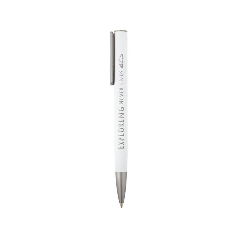 Шариковая ручка с корпусом из переработанного алюминия и посеребренным зажимом из пластика ABS. Цвет чернил: синий. Длина непрерывной линии: 800 метров. Размер пера: 1,0 мм. Recycled Aluminium.