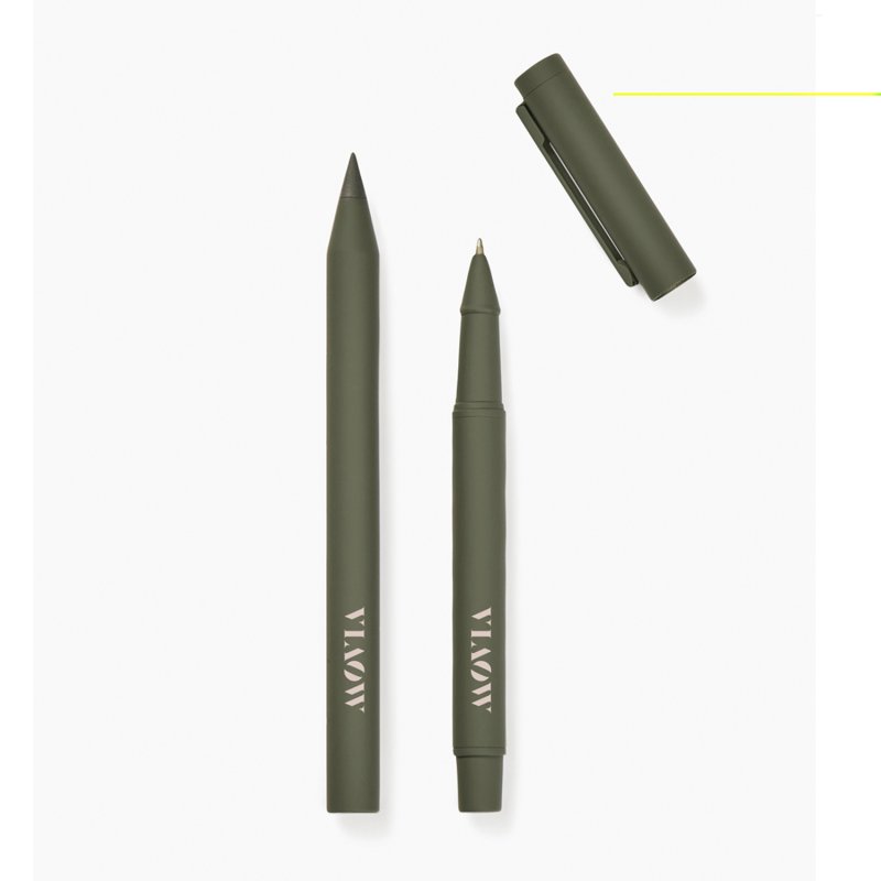Современный и элегантный набор Baltimore шведского бренда VINGA включает в себя два предмета: шариковую ручку с колпачком и вечный карандаш. Корпус изделий выполнен из переработанной нержавеющей стали, сертифицированной RCS. Толщина письма шариковой ручки — 1 мм, чернила — Documental синего цвета, которых хватит, чтобы прочертить линию до 1200 м. Вечный карандаш похож на классический, но по расходу сопоставим с сотней графитовых. Переработанные материалы изделия сертифицированы RCS (Recycled Claim Standard). Сертификация RCS гарантирует, что вся цепочка поставок проверена и подтверждена. Содержание вторсырья: 52%переработанного алюминия и 10% переработанной нержавеющей стали. Набор поставляется в фирменной коробке.