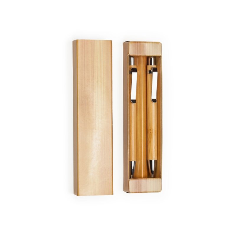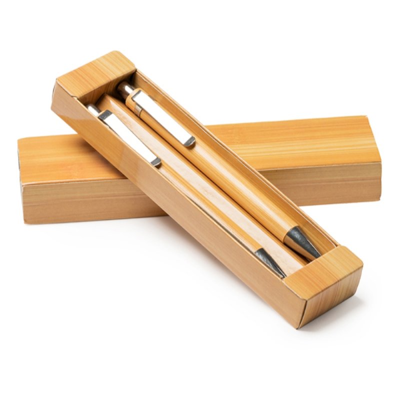 Набор из бамбуковой ручки и механического карандаша. Синие чернила.