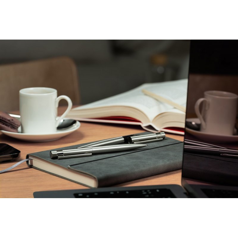 Ручка и роллер Platero в изящном матовом корпусе из переработанной вторичной стали — вклад в экологию и сокращение углеродного следа. Уверенность в себе и в будущем.
