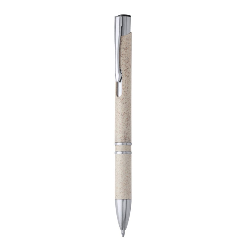 Кнопочная ручка из пшеничного волокна и АБС с серебряными деталями. Джамбо-заправка синими чернилами. Пшеничное волокно и ABS.