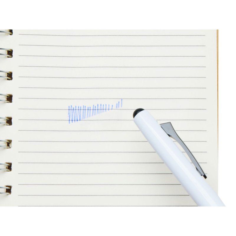 Пластиковая шариковая ручка со стирающимися чернилами. Синие чернила стираются с помощью ластика в верхней части ручки.