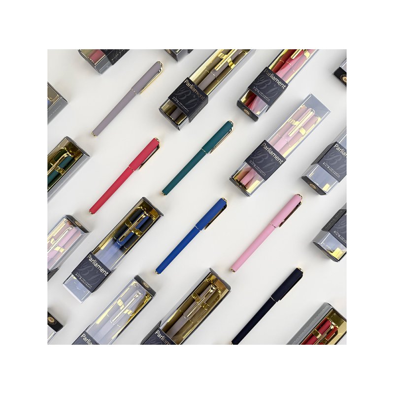 Ручка Parliament с чернилами на масляной основе синего цвета отличается мягким письмом и толщиной линии 0,5 мм. Ее прорезиненный корпус soft-touch обеспечивает комфорт при длительном использовании, а отвинчивающийся наконечник облегчает доступ к сменному стержню. Колпачок с клип-зажимом обеспечивает удобное крепление ручки на одежде или сумке. Качество письма обеспечивается премиальным швейцарским пишущим узлом диаметром 0,7 мм от производителя Premec и немецкими чернилами марки Dokumental. Ручка упакована в индивидуальную подарочную упаковку.