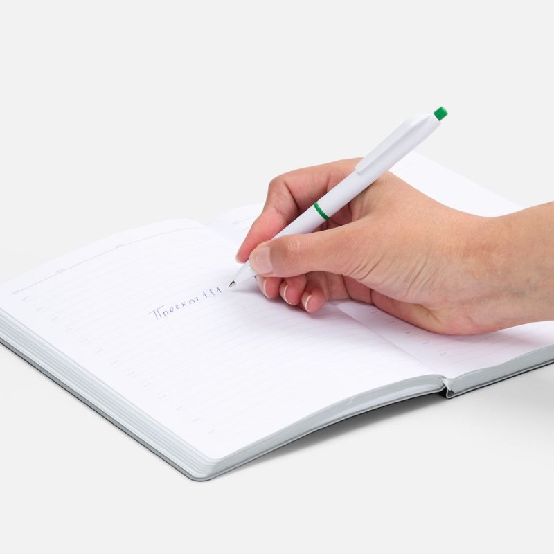 Классическая модель ручки с акцентными деталями: кольцом и кнопкой, — которые дополнят логотип компании.