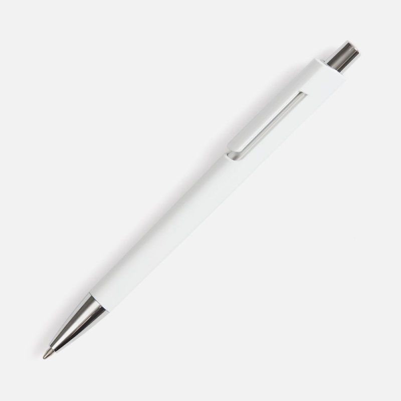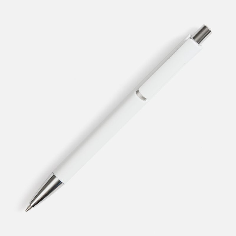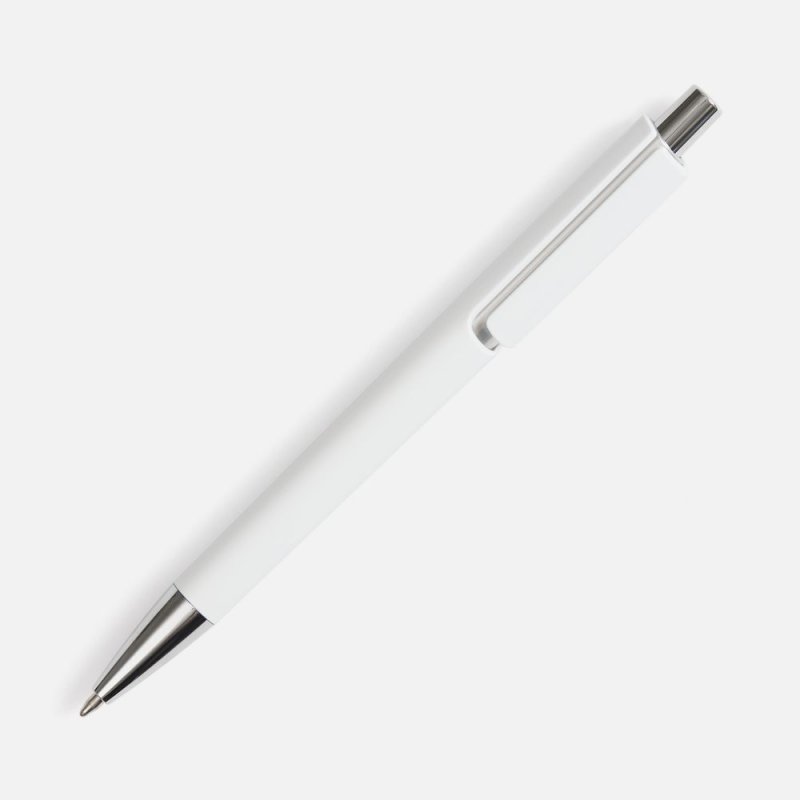 Шариковая ручка с цветным глянцевым корпусом и акцентными серебристыми деталями.