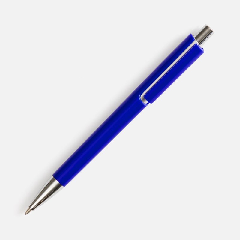 Шариковая ручка с цветным глянцевым корпусом и акцентными серебристыми деталями.