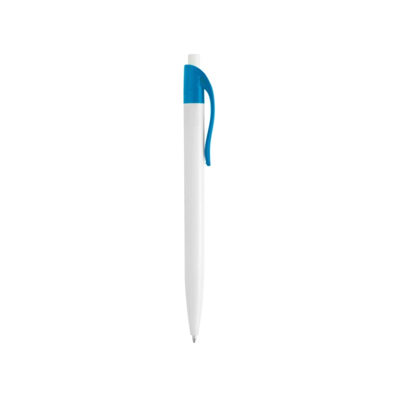 Стильная пластиковая ручкас ярким цветным клипом и белым корпусом отлично подойдет для нанесения логотипов и рекламной информации. Нажимной механизм.