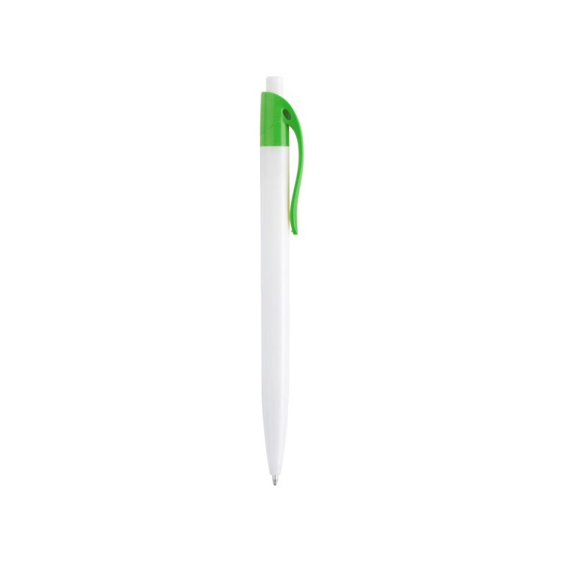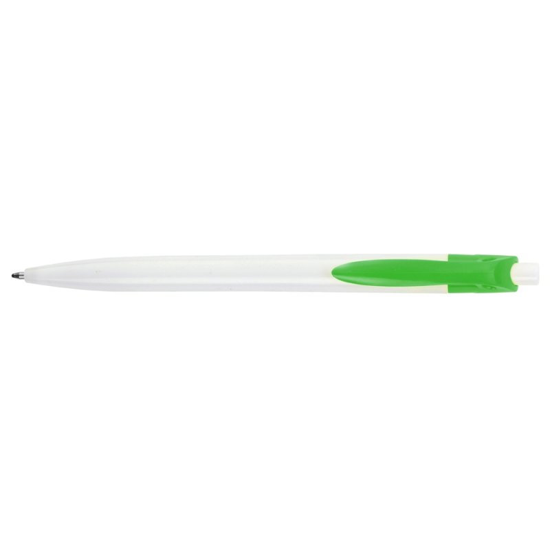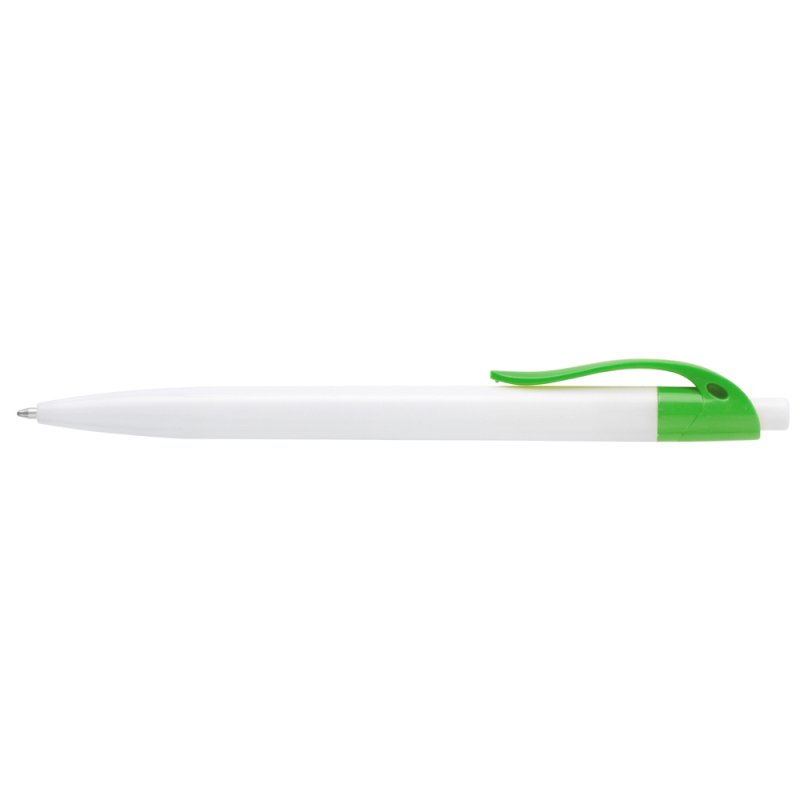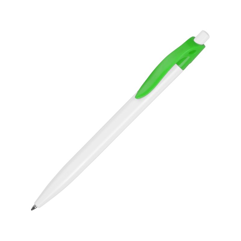 Стильная пластиковая ручкас ярким цветным клипом и белым корпусом отлично подойдет для нанесения логотипов и рекламной информации. Нажимной механизм.