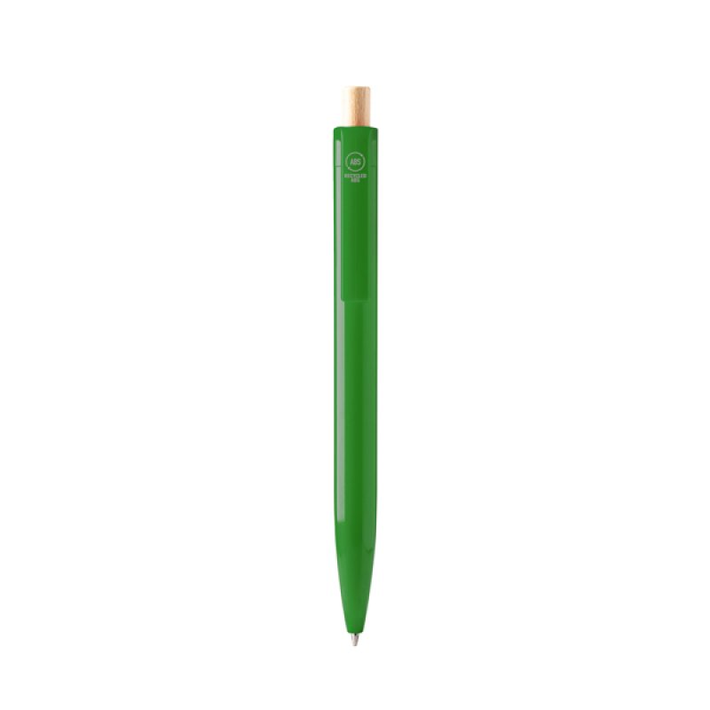 Шариковая ручка из переработанного ABS пластика с бамбуковой кнопкой. Джамбо-заправка синими чернилами.