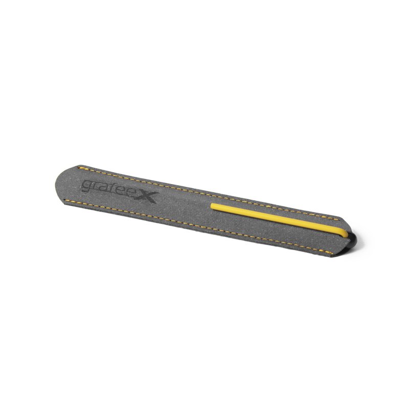 Инновационный, совершенно необычный карандаш с цельным алюминиевым матовым корпусом черного цвета, ярко-желтым клипом и пишущим наконечником из материала GrafeeX. GrafeeX - это запатентованный инновационный материал, полученный в результате спекания мелких частиц графита при высоких температурах. То есть он пишет, как обычный графитовый карандаш, но из-за высокой плотности материала крайне экономно расходуется, и его хватает очень надолго.Карандаш вкладывается в элегантный темно-серый чехол с контрастной прострочкой в цвет клипа, сшитый вручную из рециклированной кожи. GrafeeX станет идеальным помощником в повседневной жизни: для заметок, для набросков или просто для записи идей на бумаге.