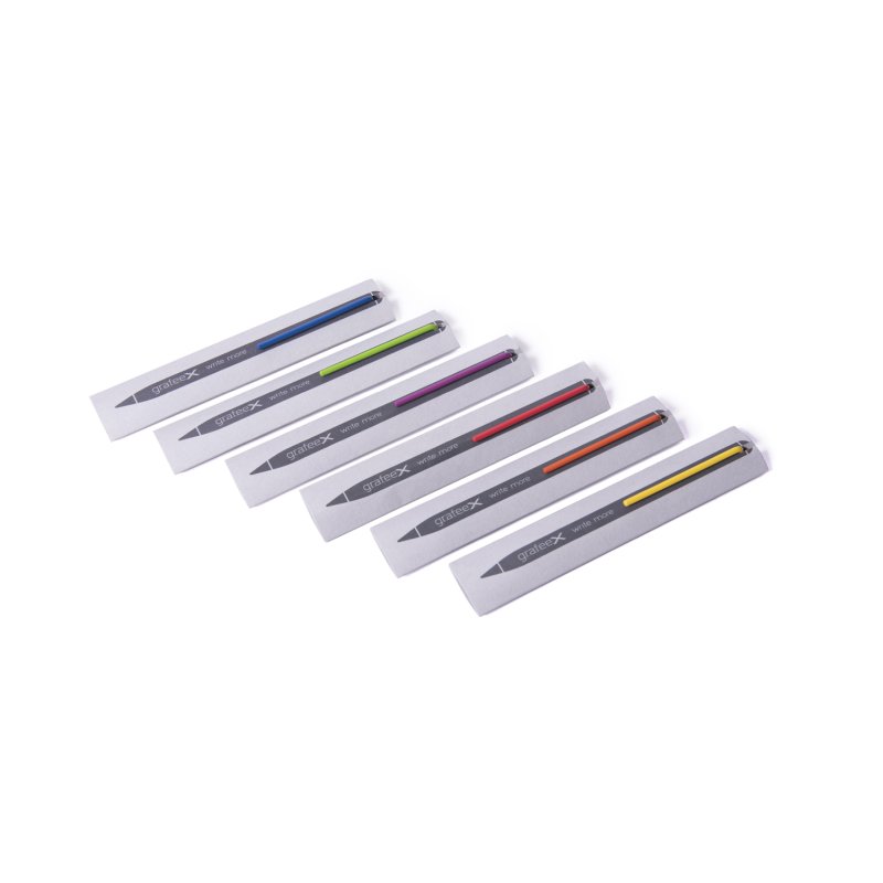 Инновационный, совершенно необычный карандаш с цельным алюминиевым матовым корпусом черного цвета, ярко-красным клипом и пишущим наконечником из материала GrafeeX. GrafeeX - это запатентованный инновационный материал, полученный в результате спекания мелких частиц графита при высоких температурах. То есть он пишет, как обычный графитовый карандаш, но из-за высокой плотности материала крайне экономно расходуется, и его хватает очень надолго.Карандаш вкладывается в элегантный темно-серый чехол с контрастной прострочкой в цвет клипа, сшитый вручную из рециклированной кожи. GrafeeX станет идеальным помощником в повседневной жизни: для заметок, для набросков или просто для записи идей на бумаге.
