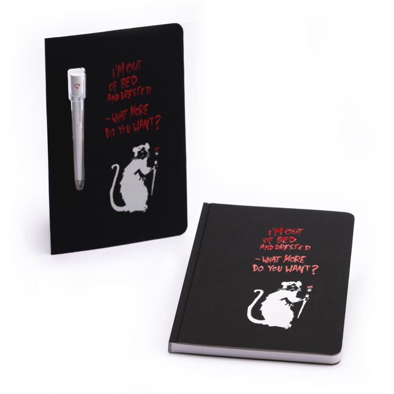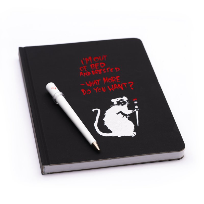 Набор из лимитированной коллекции с культовыми граффити Banksy Крыса/I´m out of bed Rat. Вечная ручка Primina белого цвета длиной 11,3 см и весом 17 гр оснащена фирменным наконечником Ethergraf®, который изготовлен из сплава металлов по запатентованной технологии. Наконечник не содержит свинец и алюминий, производится вручную итальянскими мастерами и практически не расходуется за десятилетия использования. При соприкосновении с поверхностью бумаги, происходит химическая реакция и наконечник оставляет серебристый след, который напоминает цвет графитового карандаша, но обладает большей стойкостью. Идеально пишет на каменной бумаге. Тетрадь с листами из каменной бумаги размером А5 (14х21 см) содержит 64 листа в линейку. Черная твердая обложка с покрытием soft-touch фиксируется резинкой. Листы сделаны из каменной бумаги, экологической альтернативы обычной целлюлозной бумаге, которая не требует вырубки деревьев, использования воды и агрессивных химических веществ, тем самым защищая окружающую среду. Она состоит из 80% камня (карбоната кальция) и на 20% из связующего его нетоксичного полиэтилена высокой плотности (HDPE). Это бумага нового поколения с уникальными характеристиками. Каменная бумага на 100% водоотталкивающая, ее можно мыть. Жидкости, включая масло, не изменяют ее структуру, поскольку она не содержит древесных волокон, которые поглощают жидкости, в следствие чего традиционная бумага покрывается пятнами, деформируется и разрушается. Каменная бумага устойчива к разрыву, что также способствует ее долговечности. Она имеет приятный бархатистый эффект и не отражает свет. Плотность бумаги 140 гр/м2. Сделано в Италии.