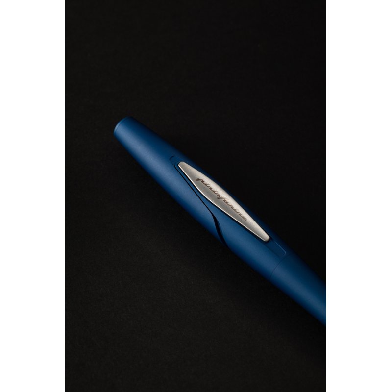 Перьевая ручка из новой коллекции посвященной 90летию бренда - PF NOVANTA представляет собой квинтэссенцию дизайна и неповторимого стиля бренда за его 90-летнюю историю, в которой прошлое, настоящее и будущее сочетаются в идеальной гармонии. Сделана полностью в Италии. Корпус синего цвета с серебристыми деталями. Оригинальный вырез колпачка. Фидер (устройство подачи чернил) ручки выполнен с помощью микромеханической техники, специально откалиброван, обеспечивает длительный срок службы чернил и защищает при перепадах атмосферного давления и температуры. Перо стальное, тонкое F. Корпус ручки выполнен из алюминия, длина ручки 15 см, диаметр 2 см, вес 50 гр. Упакована в серебристую округлую подарочную коробку. «Итальянский стиль означает чувство пропорции, простоту и гармонию линий, такие, что спустя значительное время все еще остается что-то более живое, чем просто воспоминание о красоте» - Battista Pinin Farina