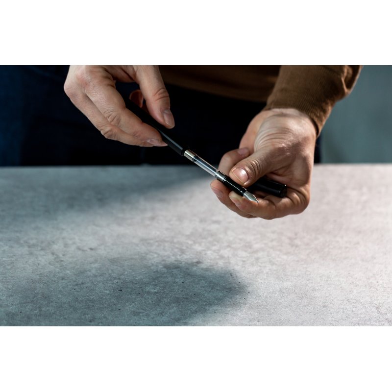Перьевая ручка коллекции 2021 Pininfarina PF One. Безупречное качество и элегантный дизайн итальянского концерна. Сочетание черного матового корпуса и глянцевых элементов – грипа и клипа. Отличительная черта новой модели – это поворотный клип на колпачке ручки. В стандартном положении он является элементом дизайна и не выступает за контуры ручки, если же его повернуть, то колпачок ручки превратится в привычный всем колпачок с клипом, который будет надежно держать вашу ручку в кармане или блокноте. Благодаря треугольной форме корпуса ручка удобно ложится в руку. Тонкое стальное перо F. Корпус ручки выполнен из алюминия, ее длина 14 см, вес 33 гр. Упакована в треугольную подарочную коробку, повторяющую форму ее корпуса.