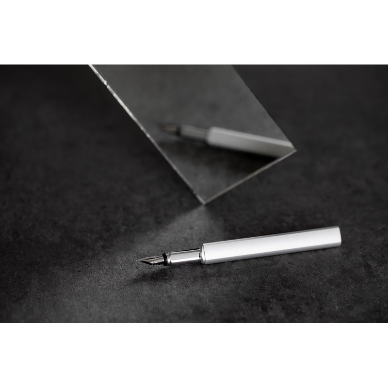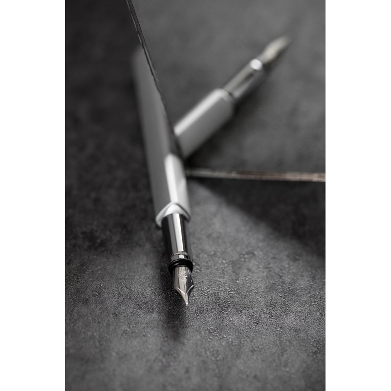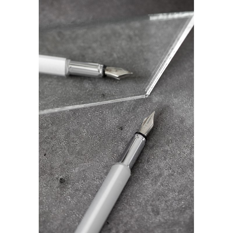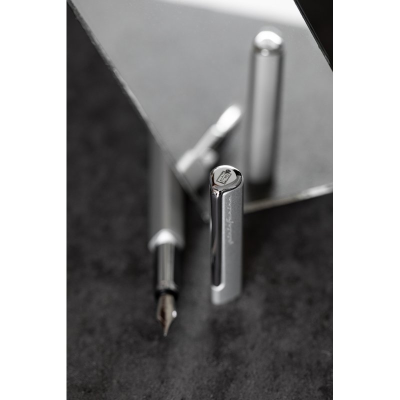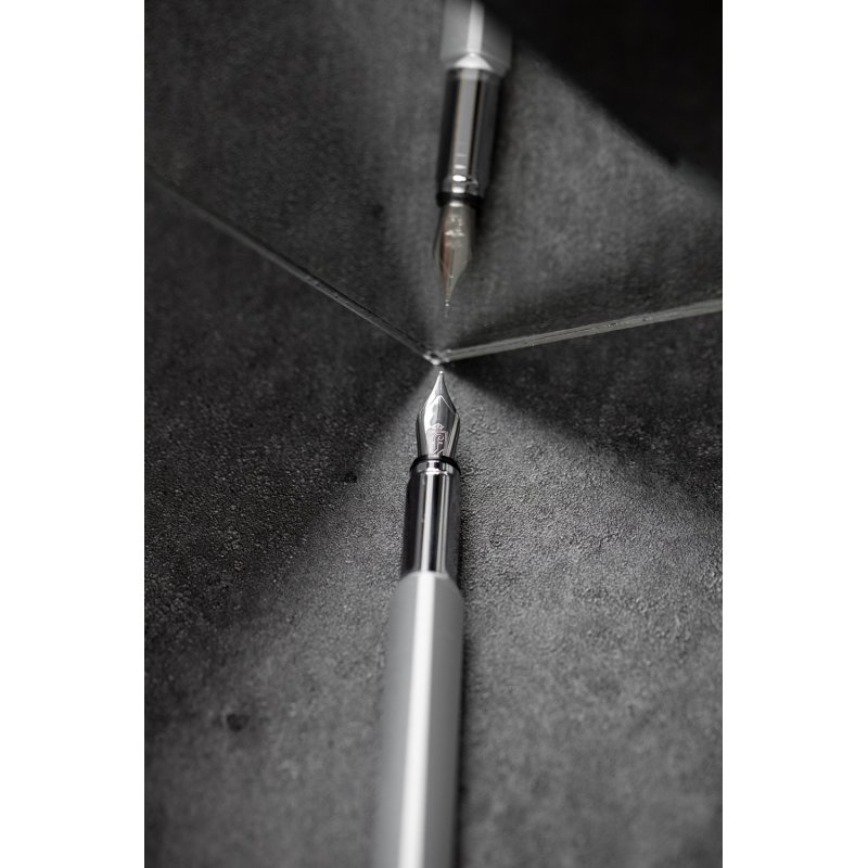 Перьевая ручка коллекции 2021 Pininfarina PF One. Безупречное качество и элегантный дизайн итальянского концерна. Сочетание серебристого матового корпуса и глянцевых элементов – грипа и клипа. Отличительная черта новой модели – это поворотный клип на колпачке ручки. В стандартном положении он является элементом дизайна и не выступает за контуры ручки, если же его повернуть, то колпачок ручки превратится в привычный всем колпачок с клипом, который будет надежно держать вашу ручку в кармане или блокноте. Благодаря треугольной форме корпуса ручка удобно ложится в руку. Тонкое стальное перо F. Корпус ручки выполнен из алюминия, ее длина 14 см, вес 33 гр. Упакована в треугольную подарочную коробку, повторяющую форму ее корпуса.