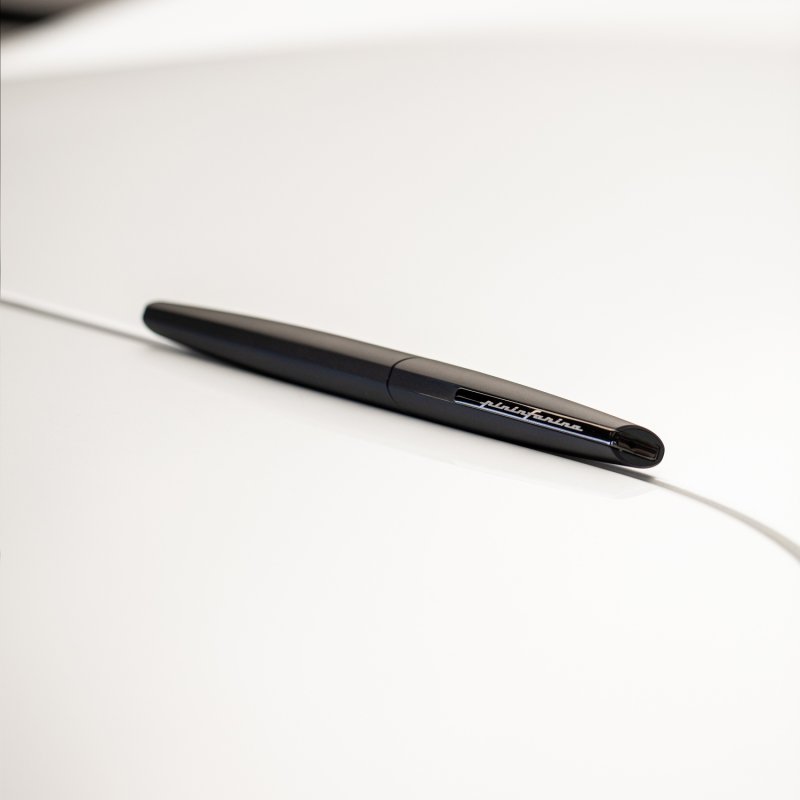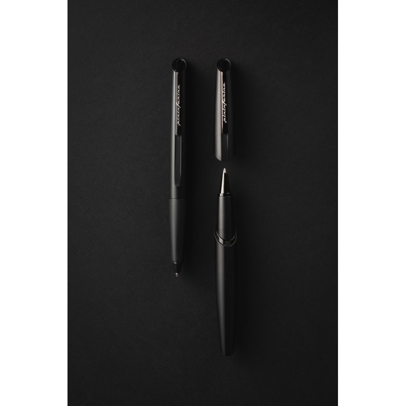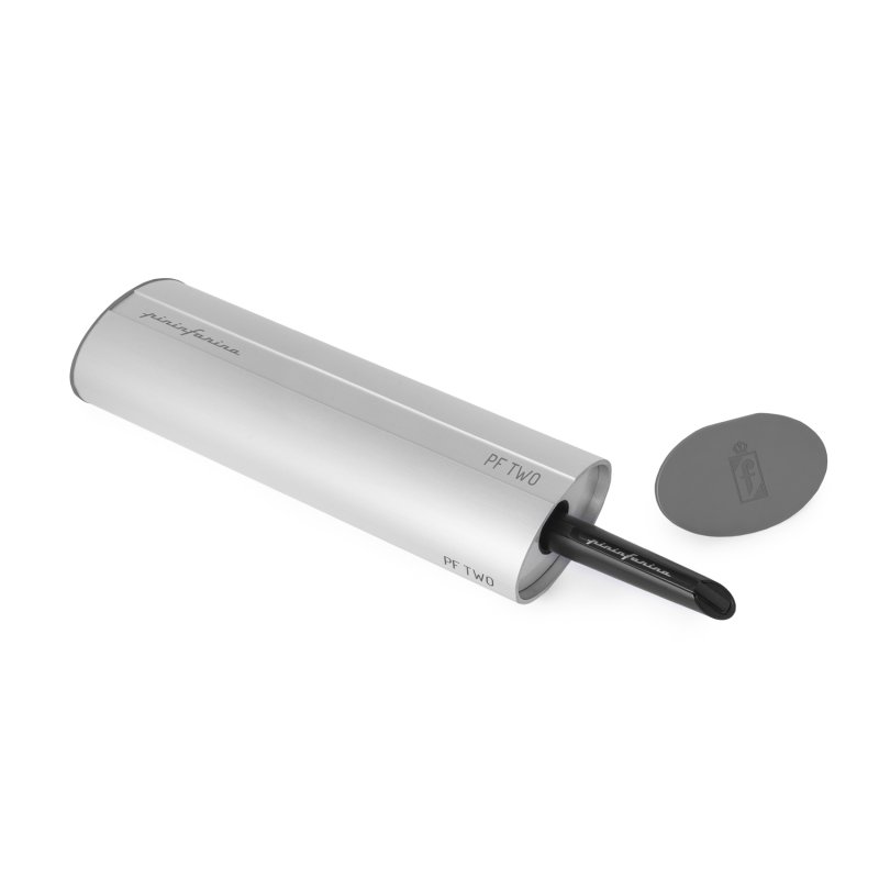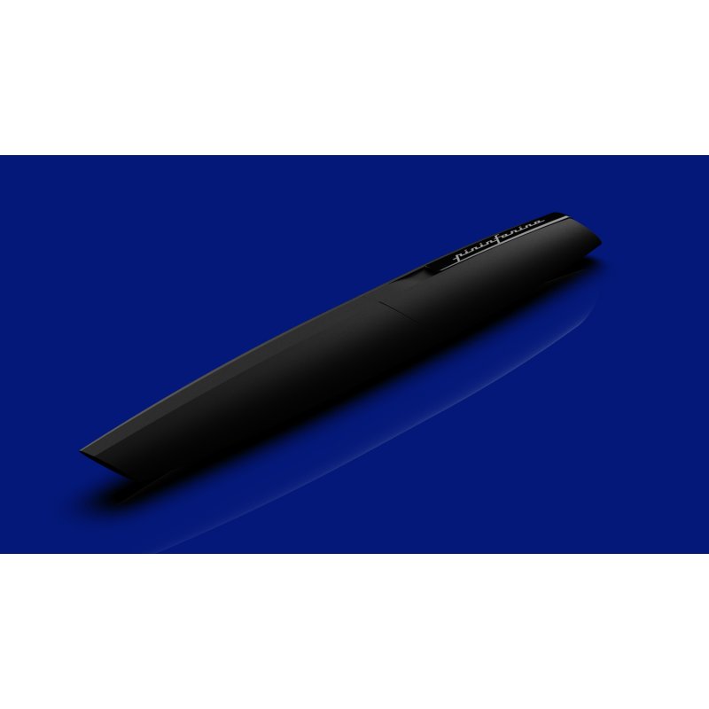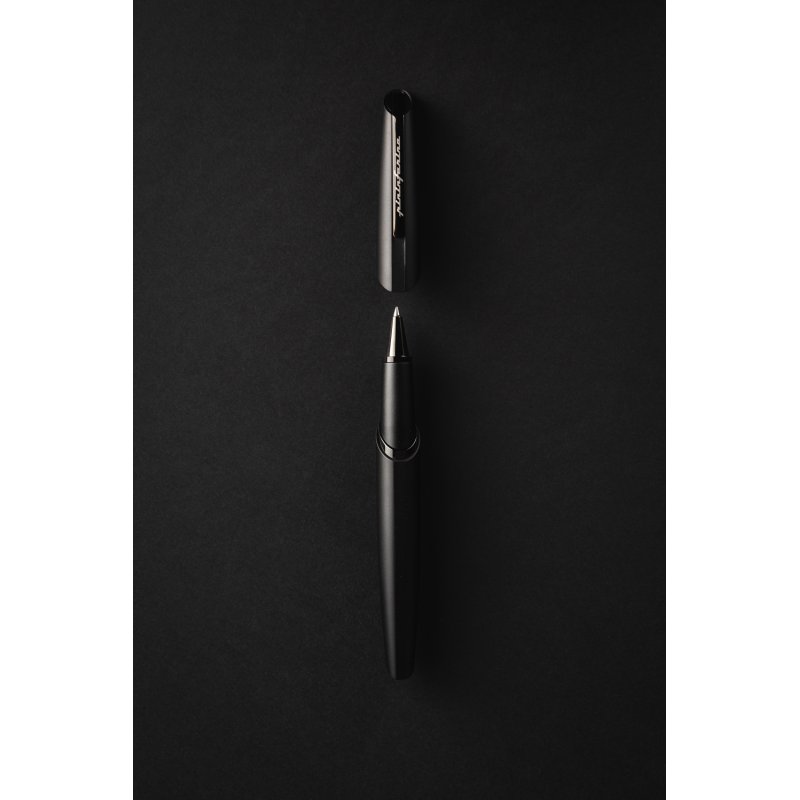 Роллер из коллекции 2021 года PF Two от дизайнеров Pininfarina. Точные геометрические формы и уникальное техническое исполнение ручки превращают ее из пишущего инструмента в совершенный аксессуар. Скошенные линии колпачка. Элегантное сочетание черного матового корпуса и глянцевого клипа на колпачке ручки. Корпус ручки выполнен из алюминия, ее длина 15 см, вес 40 гр. Упакована в серебристую округлую подарочную коробку. В ручке используется чернильный стержень Schmidt SRC 5888 с синей пастой.