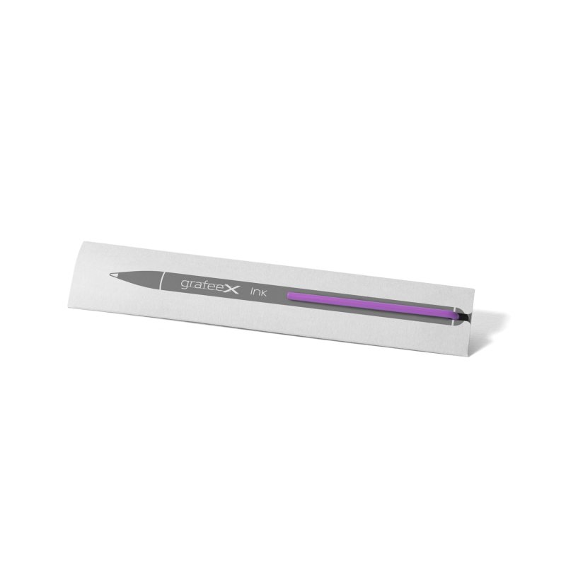 Шариковая ручка с цельным алюминиевым матовым корпусом черного цвета и ярко-фиолетовым клипом. Дизайн ручки такой же, как и у инновационного карандаша GrafeeX. В ручке используется шариковый стержень CROSS® 8513, который выдвигается с помощью поворотного механизма.