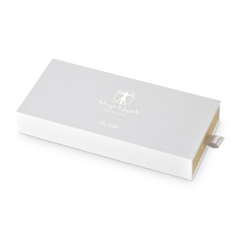 Pininfarina PIUMA - шариковая ручка динамической формы в виде гусиного пера сделана в память Кодекса о полете птиц Леонардо да Винчи, целью которого было понять тайну полета и который хранится сейчас в Королевской библиотеке Турина. Ручка полностью сделана из дерева груши. На ее корпусе выгравирован зеркальный автограф Мастера, который отражается в отполированной стальной настольной подставке для ручки. В ручке используется шариковый стержень Schmidt ® S635 (D1) с синей пастой. Набор упакован в белую подарочную коробку.