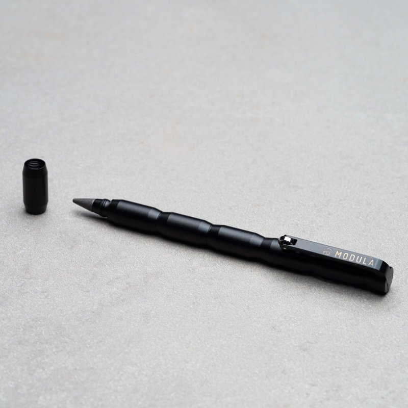 Ручка-трансформер из коллекции Pininfarina Modula черного цвета создана Pininfarina в сотрудничестве с итальянским дизайнером Луиджи Тренти. Получился совершенно необычный пишущий инструмент, сочетающий в себе шариковую ручку и карандаш. Корпус сделан из алюминия и имеет два независимых пишущих узла: шариковую ручку и карандаш со сменным наконечником из материала GrafeeX. GrafeeX - это запатентованный инновационный материал, полученный в результате спекания мелких частиц графита при высоких температурах. То есть он пишет, как обычный графитовый карандаш, но из-за высокой плотности материала крайне экономно расходуется, и его хватает очень надолго. Modula - это своеобразный конструктор, так как она может быть составлена по-разному, вплоть до укорачивания, вследствие того, что один из двух наконечников можно убрать. Оригинальный дизайн клипа. Длина ручки 15 см, диаметр 0,6 см, вес 22 гр. Упакована в черную коробку из дизайнерского многослойного картона 15х3,5х2 см. Вес в упаковке 62 гр. Сделана в Италии.