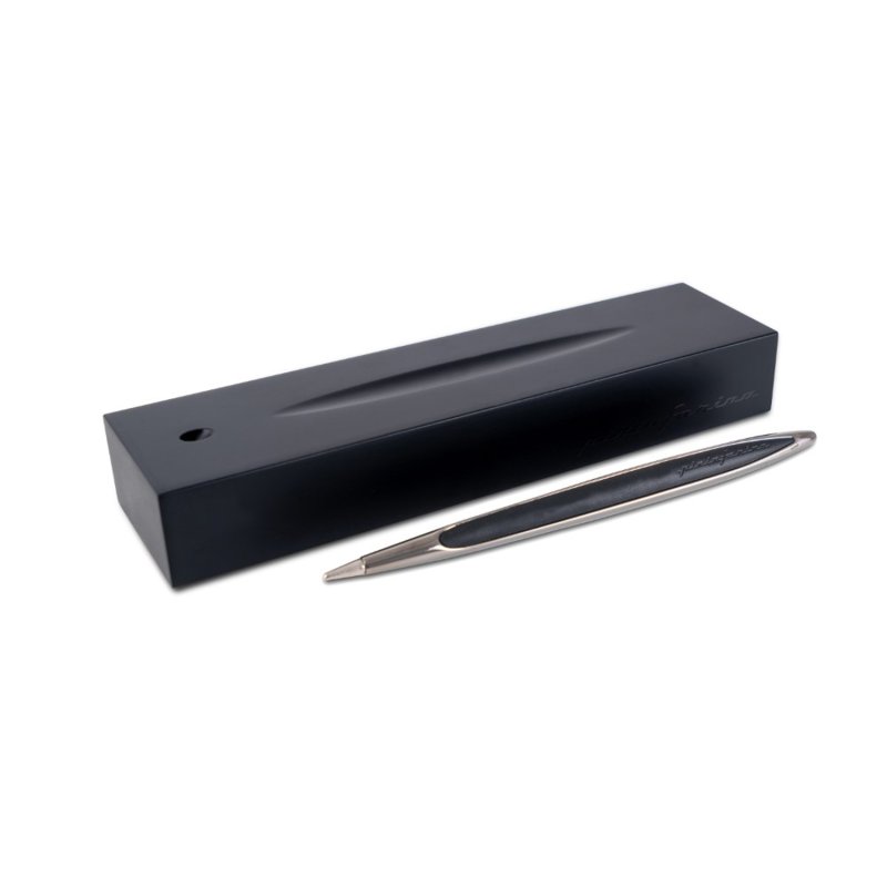 Флагманская ручка дизайнерского дома Pininfarina сочетает в себе роскошь и смелые дизайнерские решения. Pininfarina Cambiano - это объединение различных материалов, технологичность и элегантные линии. Вечная ручка имеет необычный пишуший узел в виде наконечника Ethergraf, который изготовлен из сплава металлов по запатентованной технологии. Он не содержит свинец и алюминий, производится вручную итальянскими мастерами и практически не расходуется за десятилетия использования. При соприкосновении с поверхностью бумаги, происходит химическая реакция и наконечник оставляет серебристый след, который напоминает цвет графитового карандаша, но обладает большей стойкостью. Корпус ручки выполнен из алюминия с черным матовым покрытием и с вставками из черной резины с эффектом soft touch. Совершенно новое, утонченное прочтение классической модели Cambiana. Вес ручки 39 гр, длина 16 см. Коробка с черным покрытием soft touch и одновременно является настольной подставкой для ручки.