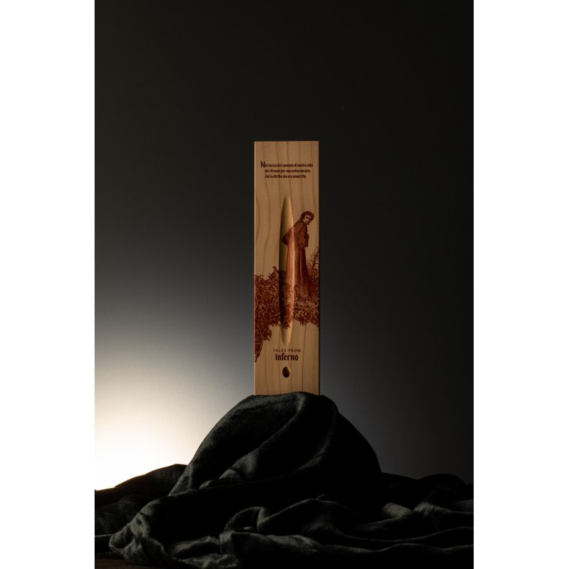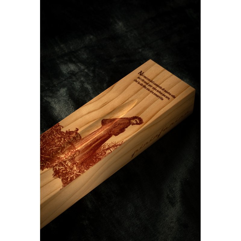 Лимитированная коллекция бренда Pininfarina в память о Данте Алигьере, приуроченная к 700-летию его смерти, с изображениями TALES FROM INFERNO - первой части Ад знаменитой Божественной Комедии. Коробка из массива кедра, которая является одновременно настольной подставкой для вечной ручки Cambiano, с иллюстрацией Гюстава Доре, изображающей темный лес, как аллегорию греха, где заблудился Данте, и где каждый человек может заблудиться на пути своей жизни. Вечная ручка имеет необычный пишущий узел в виде наконечника Ethergraf, который изготовлен из сплава металлов по запатентованной технологии. Он не содержит свинец и алюминий, производится вручную итальянскими мастерами и практически не расходуется за десятилетия использования. При соприкосновении с поверхностью бумаги, происходит химическая реакция и наконечник оставляет серебристый след, который напоминает цвет графитового карандаша, но обладает большей стойкостью. Идеально пишет на каменной бумаге. Корпус ручки выполнен из алюминия с вставками из кедрового дерева. Вес ручки 39 гр, длина 16 см.